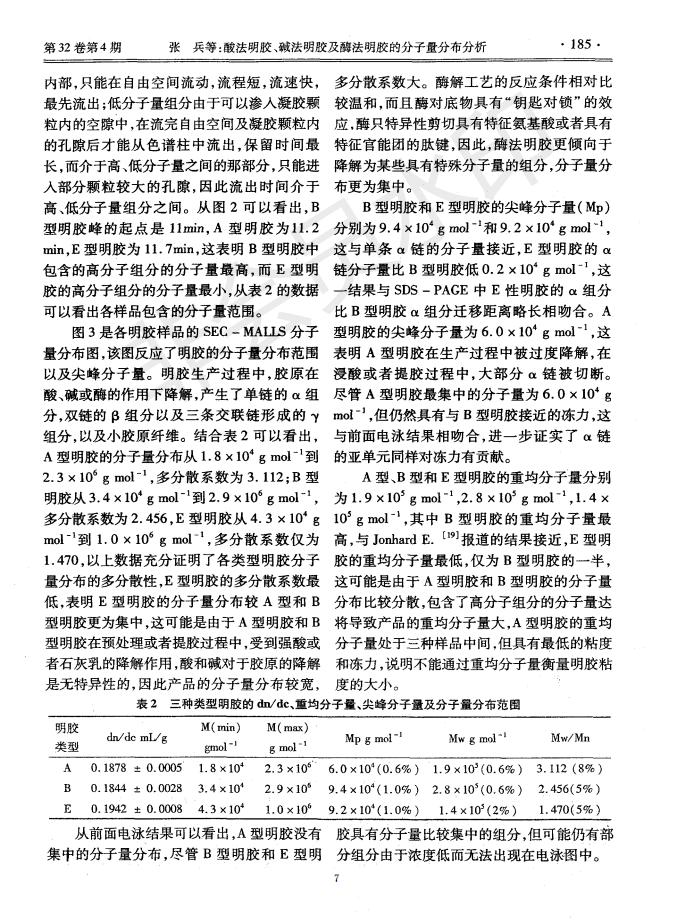 Analysis and Distribution of Molecular Weight of Acid Method Gelatin, Alkaline Method Gelatin and En