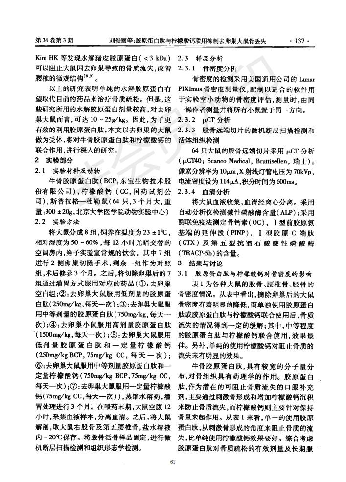 Preventive and therapeutic effects of collagen peptide and calcium citrate on bone loss in ovariecto