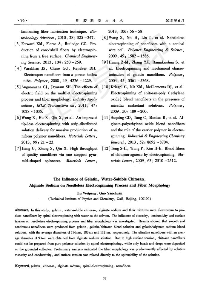 The influence of gelatin, sodium alginate and water-soluble chitosan on spinnability and fiber morph