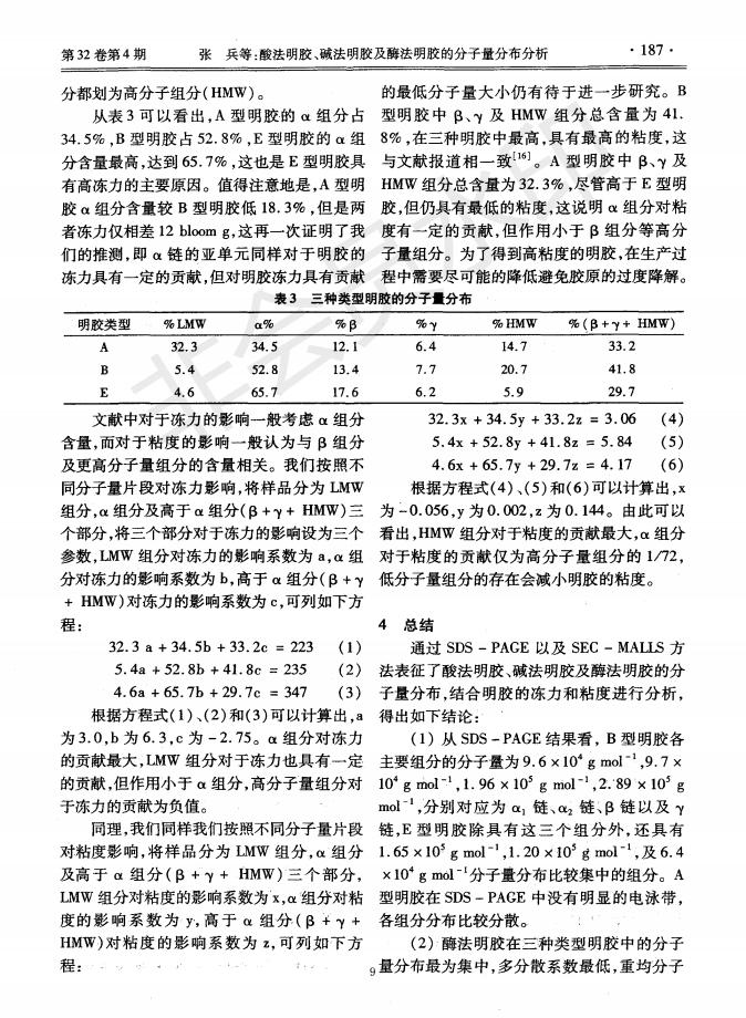 酸法明胶、碱法明胶及酶法明胶的分子量剖析漫衍剖析