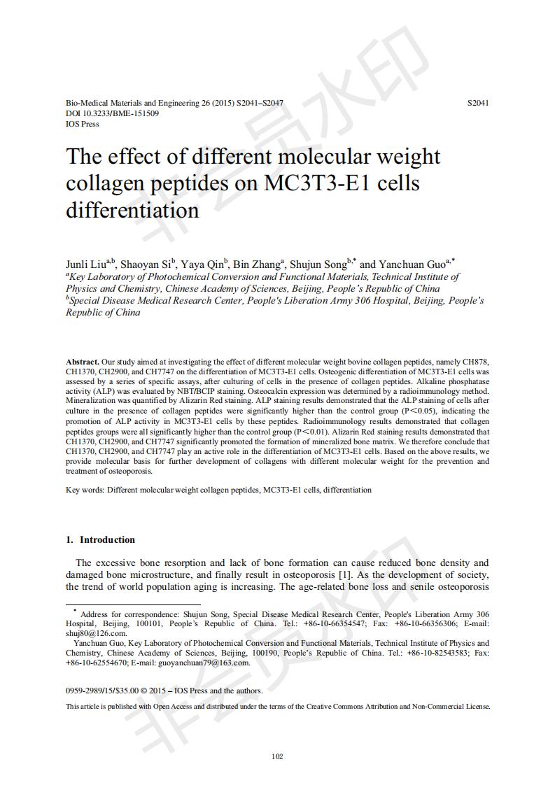 差别分子量胶原卵白肽对MC3T3-E1细胞分解的影响
