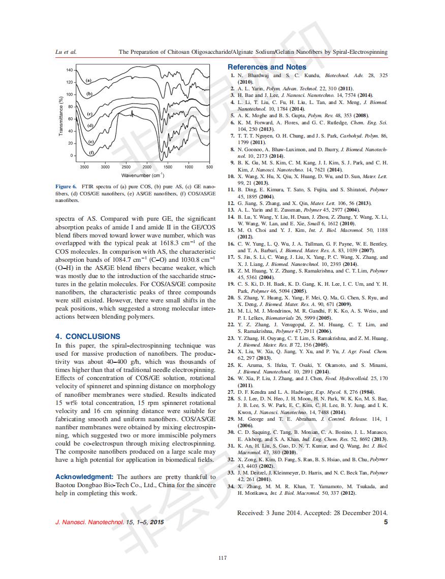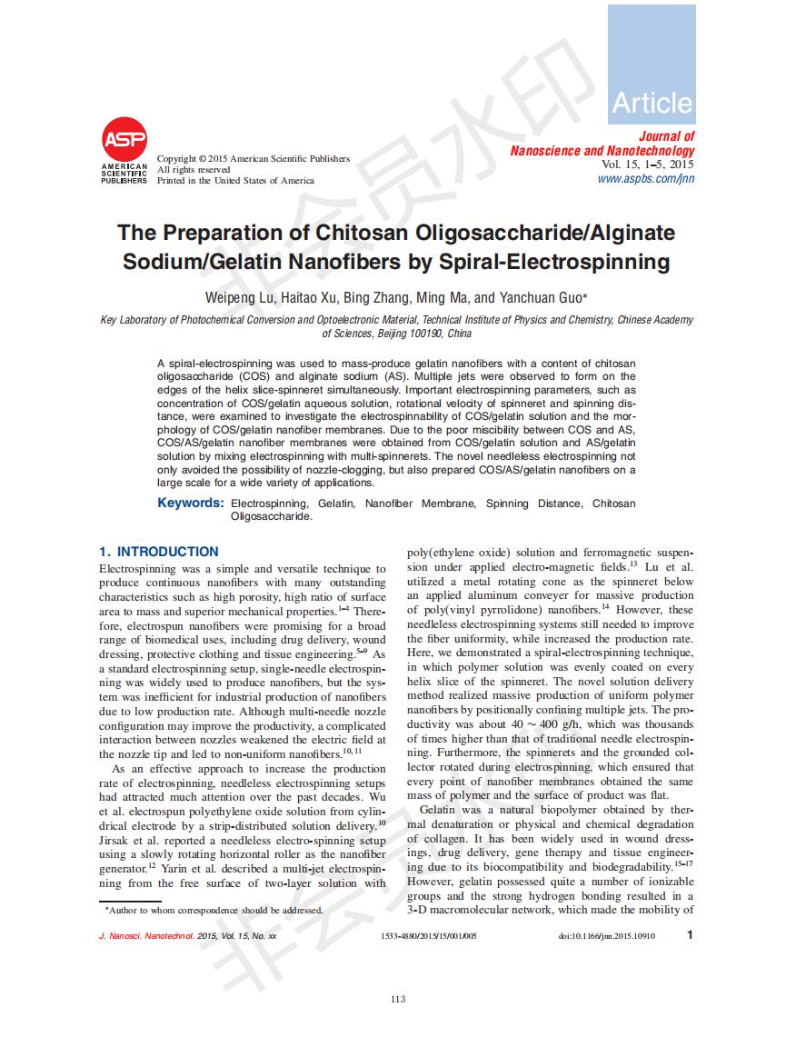 基于螺旋静电纺丝手艺的壳寡糖/海藻酸钠/明胶纳米纤维的制备研究