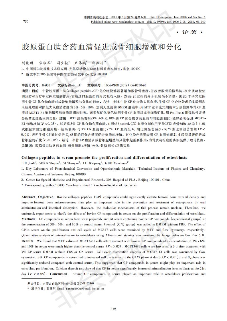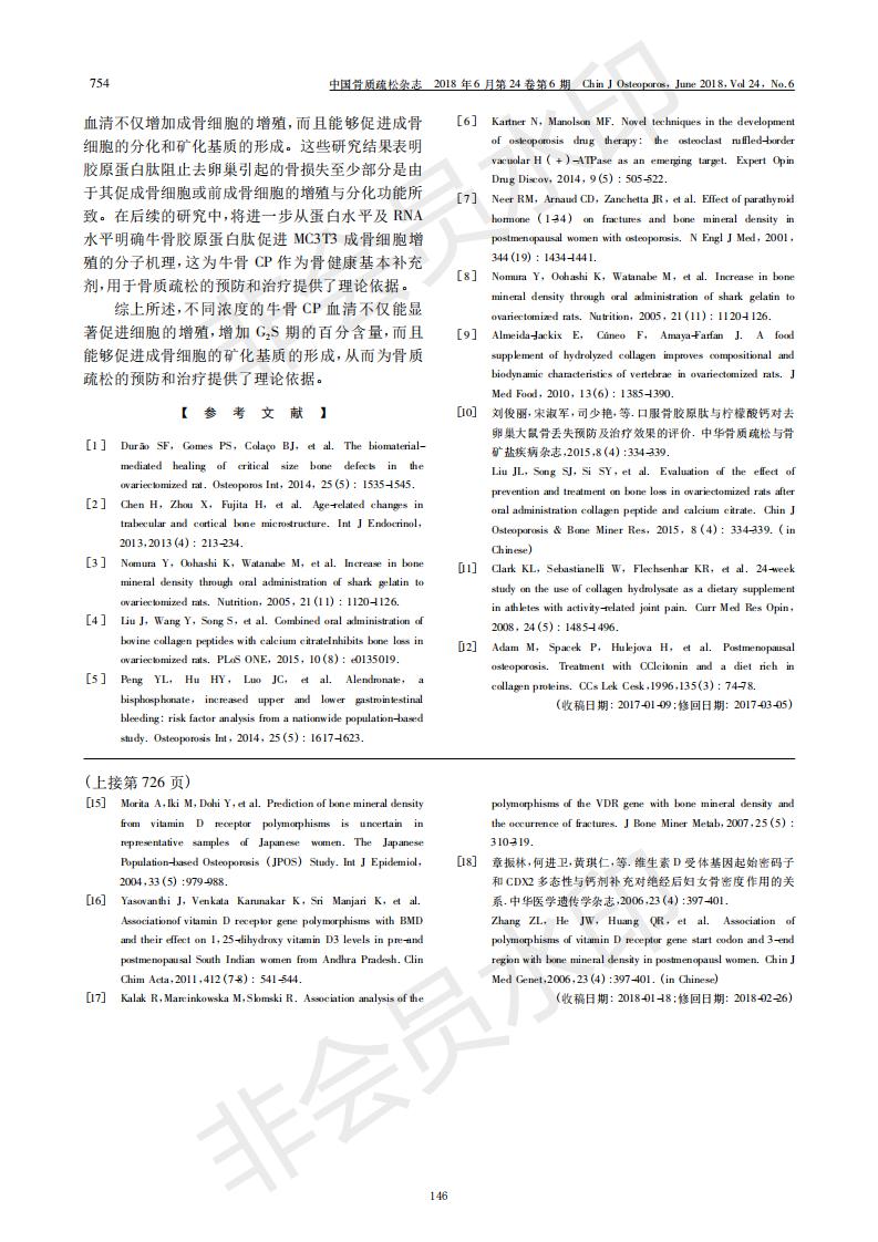 胶原卵白肽含药血清增进成骨细胞增殖和分解