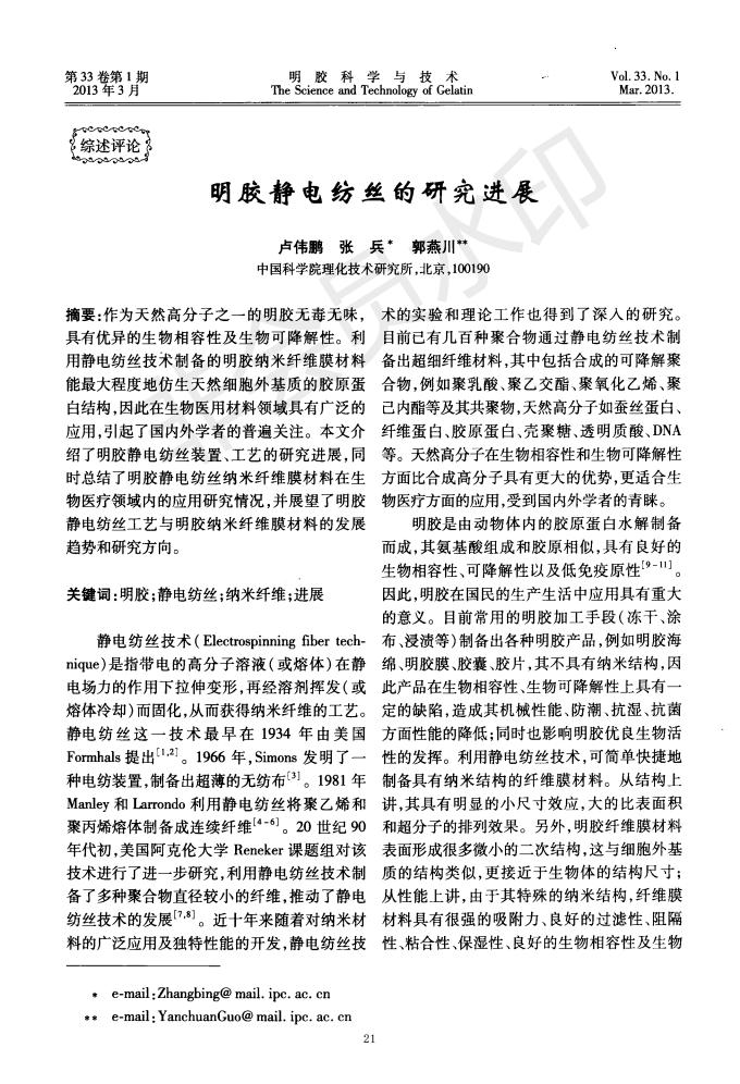 Research progress of gelatin electrospinning