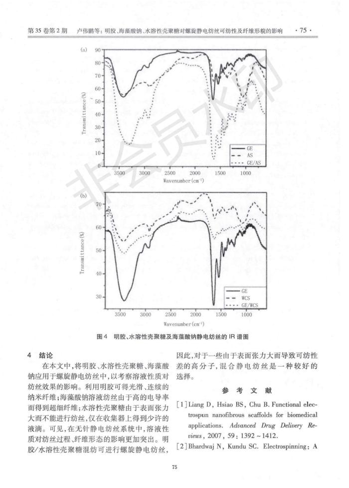 The influence of gelatin, sodium alginate and water-soluble chitosan on spinnability and fiber morph