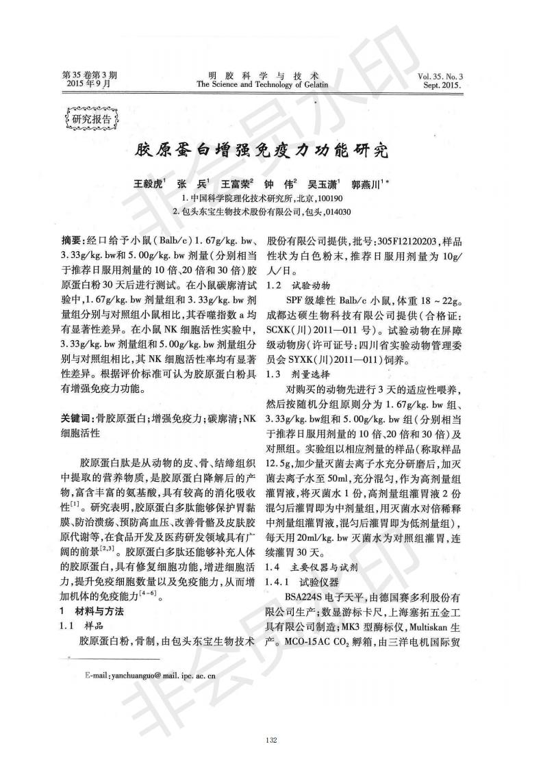 胶原卵白增强免疫力功效研究